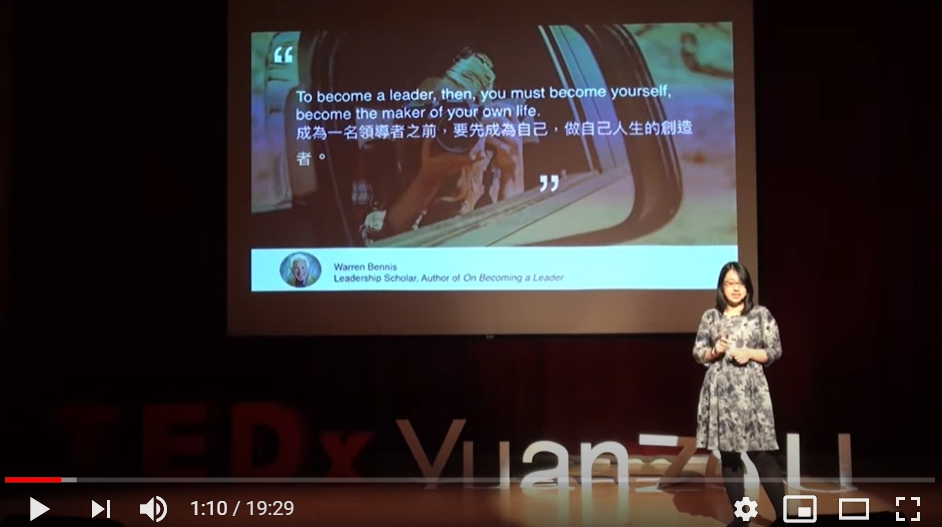 幾年後他遠赴美國持續學習組織心理學,在紐約哥倫比亞大學,她看到了世界的可能性,觀察到每個人既是獨特的個體,又是推動群體與團隊動力的關鍵,她深耕團隊發展與流程顧問,30歲時發布第一本英文商管書,談團隊文化與會議方法。她從管理顧問公司、萬人企業專案辦公室到科技新創的經歷中,體察到領導力最核心的驅動,仍是自覺與不斷學習的能力,在這次的TEDx演講中,曹代會和與會來賓分享他的故事,以及這十多年來的反思與覺察,期許能在更多未來的領導人心中,種下勇於改變與學習的種子,共同想像工作大未來,打造有溫度的職場環境。